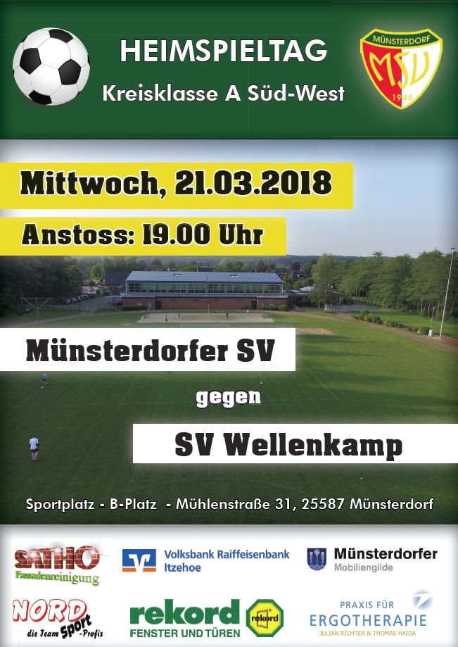 Soeben wurde entschieden, dass wir das heutige Heimspiel gegen den SV Wellenkamp wie angesetzt durchführen wollen. Es geht also endlich wieder los! Wer also spontan ist und Lust auf ein schöne Mittwochabend-Spiel hat, der kommt um 19:00 Uhr auf den Sportplatz in Münsterdorf!